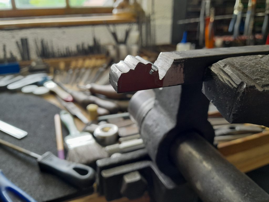 Outsourcing ist für mich ein Fremdwort. Alle Komponenten und Bestandteile meiner Werke werden im Betrieb selbst hergestellt. Ausarbeiten aus dem „Vollen“ Material ist eine der Arbeitsmethoden die mich auszeichnet. Edle Grund- und Rohmaterialien sind für mich ein Muss! Diese werden von Grund auf bis hin zum vollendeten Werk von Hand bearbeitet.